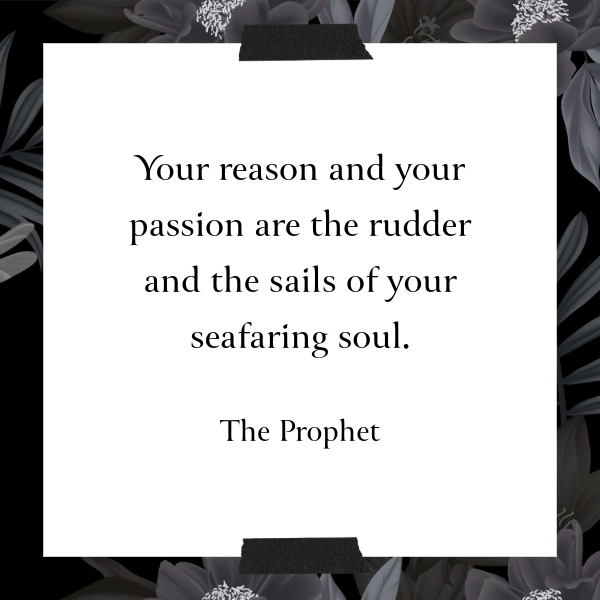 Your reason and your passion are the rudder and the sails of your seafaring soul.
